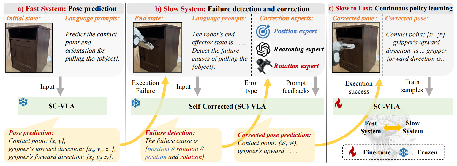 A Self-Correcting Vision-Language-Action Model for Fast and Slow System Manipulation